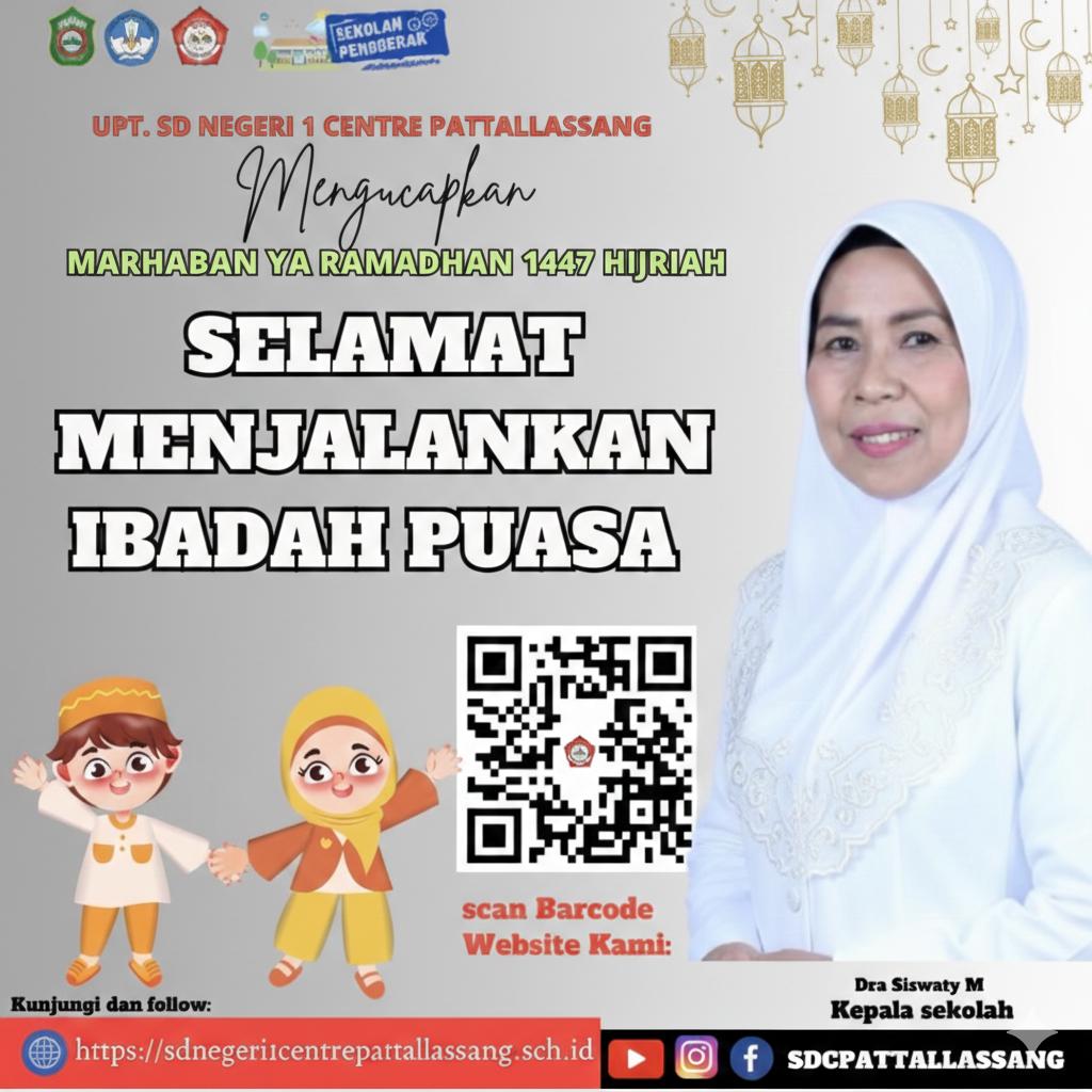Dengan semangat Marhaban ya Ramadhan 1447 H, seluruh keluarga besar UPT SD Negeri 1 Centre Pattallassang siap menyambut bulan suci dengan penuh syukur dan semangat memperbaiki diri menuju pribadi yang lebih baik.