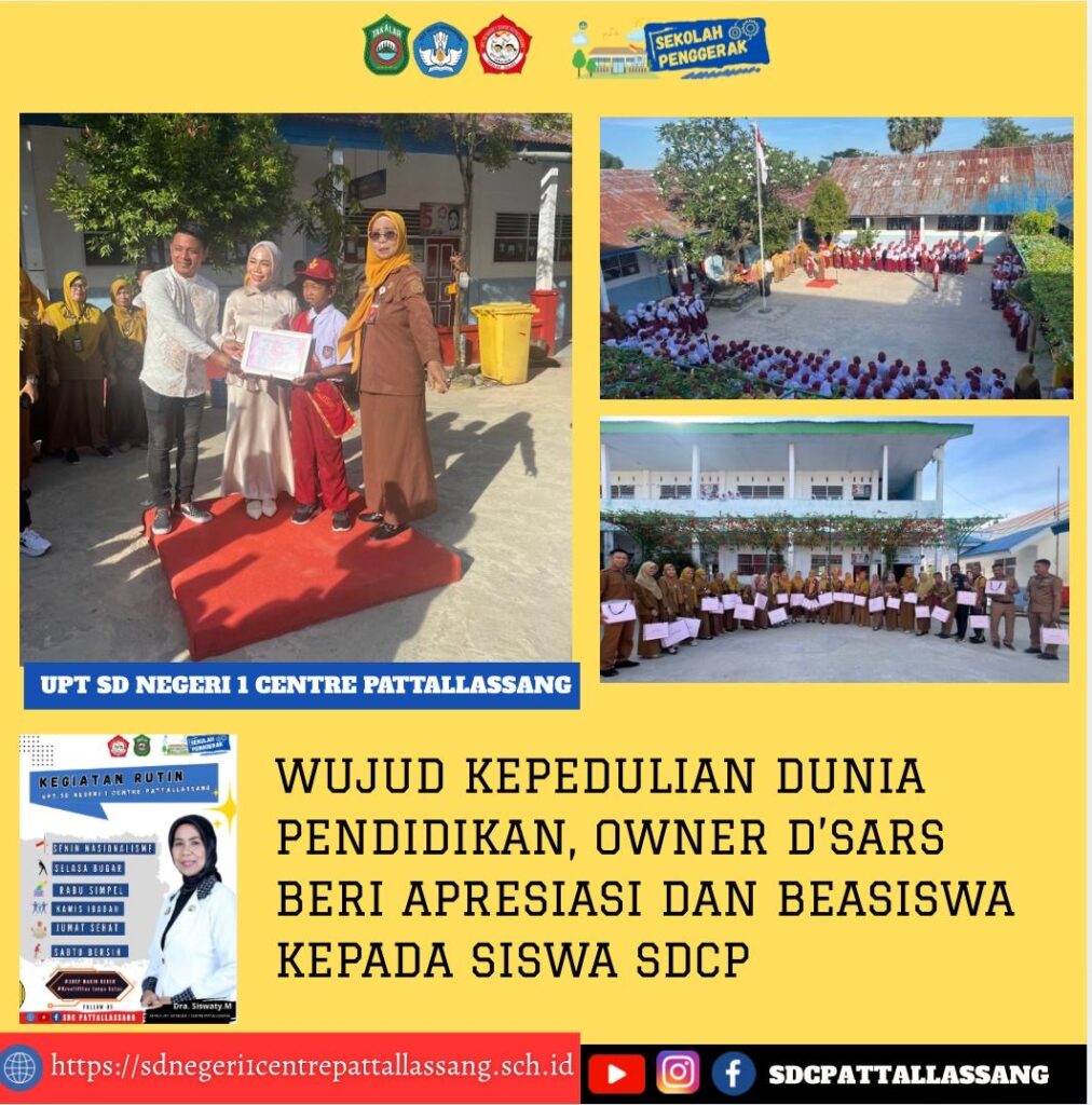 Kegiatan penyerahan apresiasi ini berlangsung dengan penuh kehangatan dan kebersamaan. Suasana haru dan bahagia terlihat dari wajah seluruh warga sekolah yang turut menyaksikan momen berharga tersebut. Kepala UPT SD Negeri 1 Centre Pattallassang, Ibu Dra. Siswaty M, menyampaikan rasa bangga dan terima kasih atas perhatian yang diberikan.
